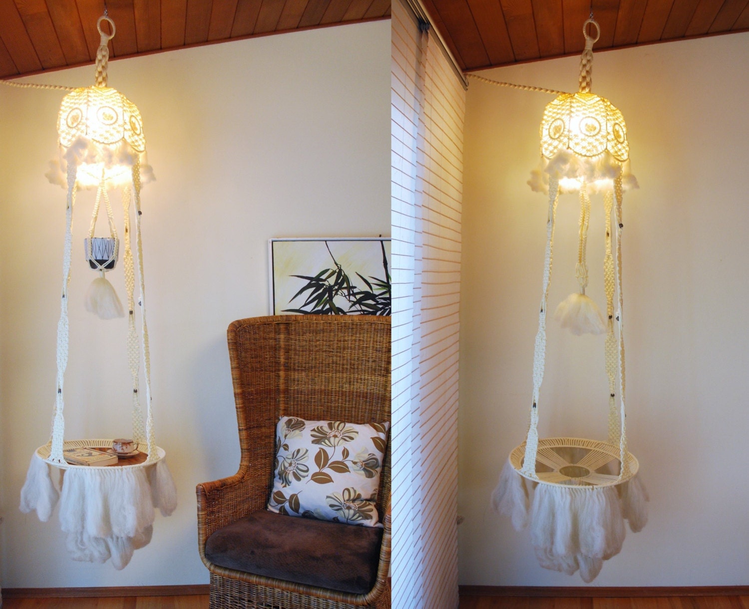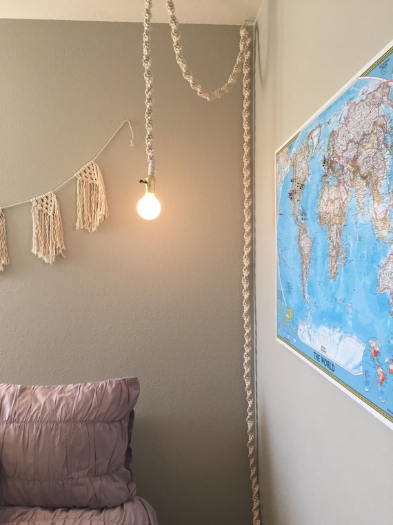 Macrame Hanging Light / Wall hanging macrame light | Boho decor, Macrame / You'll need cording, along with a lamp cord and socket kit to make this unique macrame piece.. Macrame lamp, macrame hanging light, macrame lighting, macrame chandelier, jute lamp, macrame lamp shade, hanging lampshade, boho lighting dovetailsdecor. This light up macrame hammock chair is hand crafted to the highest quality. › see more product details Next, take the right strand under the lamp cord and through the left loop to lay over the left strand. The lamp shades have modern design and contemporary feel.