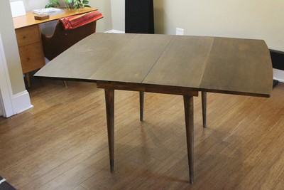 American Of Martinsville Mid Century Drop Leaf Dining Table With Metal Accented Legs from midcenturywarehouse.com Enjoy the convenience of having a desk or table without the inconvenience of permanent loss. Great savings & free delivery / collection on many items. Mid century walnut surfboard drop leaf dining table table measures: Shop our full collection of tables here at vinterior. Beautiful example of mid century drop leaf table and leather pad chairs. Table is 62 folded out and 12 folded in. 5 out of 5 stars. Mid century wooden tea cart table antique wagon wheels drawer drop leaf intact.