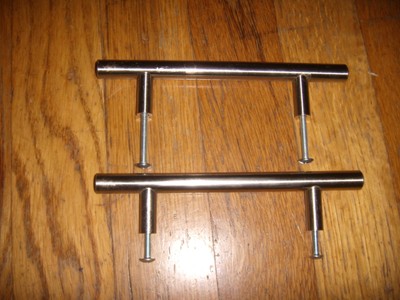Stainless steel bar pulls offer a contemporary, clean look. Browse these trendy drawer pulls that can be used for your kitchen cabinets in addition to knobs. Take 10% off orders over $95 and 15% off over $300! This post should help answer your question! Hickory hardware skylight collection 5 in.