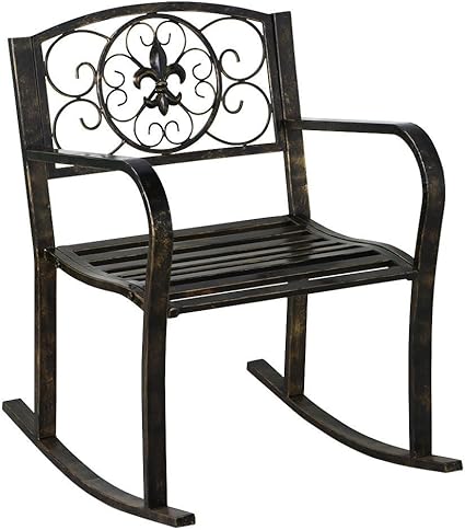 Sunnydaze steel frame and polypropylene seat and back aderes outdoor patio arm chair, black frame with red seat and back. Vingli patio rocking chairs with antique brown finish, outdoor garden iron art scroll rocker for courtyards, pools, lawns, balconies and beaches 3.7 out of 5 stars 12 $89.95 $ 89. Among the first rocking chairs were windsor rocking chairs, which were essentially just straight windsor chairs with added rockers. Our cast aluminum high back rocking chair is perfect for your patio, deck, front porch, balcony, garden or swimming pool area. Originally created as garden furniture in the 18th century, wicker rockers were known for their craftsmanship and creative designs.