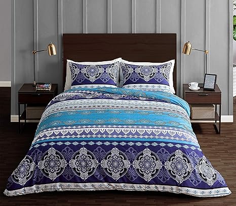 Mandala bedding, blue and plum mandala duvet cover set, henna mehendy mandala quilt cover set, boho bedspread.